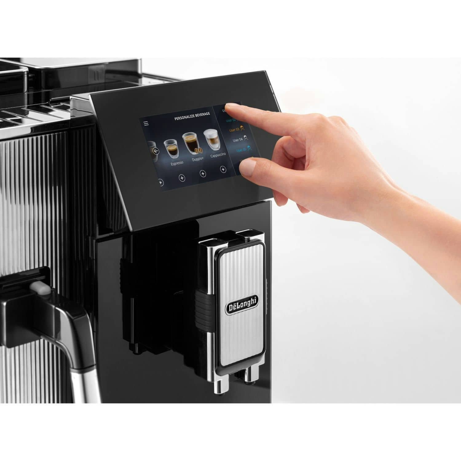 Thoughtful layout for easy access to grinder, portafilter, and water tank