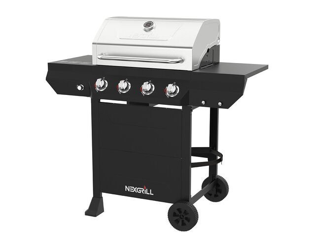 Elevate your outdoor cooking game with the Nexgrill Ranger 4 Burner BBQ—this sleek, modern barbecue is built with a stainless steel lid and a tough enamel-coated firebox for enhanced durability. You’ll be ready to get grilling straight out of the box, thanks to a full set of enamelled cast iron cooking grills, durable flame tamers, and powerful stainless steel burners. The built-in roasting hood and easy-to-read analogue thermometer make low and slow cooking a breeze—perfect for juicy roasts, tender ribs, or smoked favourites. Reliable battery ignition gets things started with ease, and the sturdy powder-coated shelves and frame keep everything steady, including secure storage for your gas bottle.
