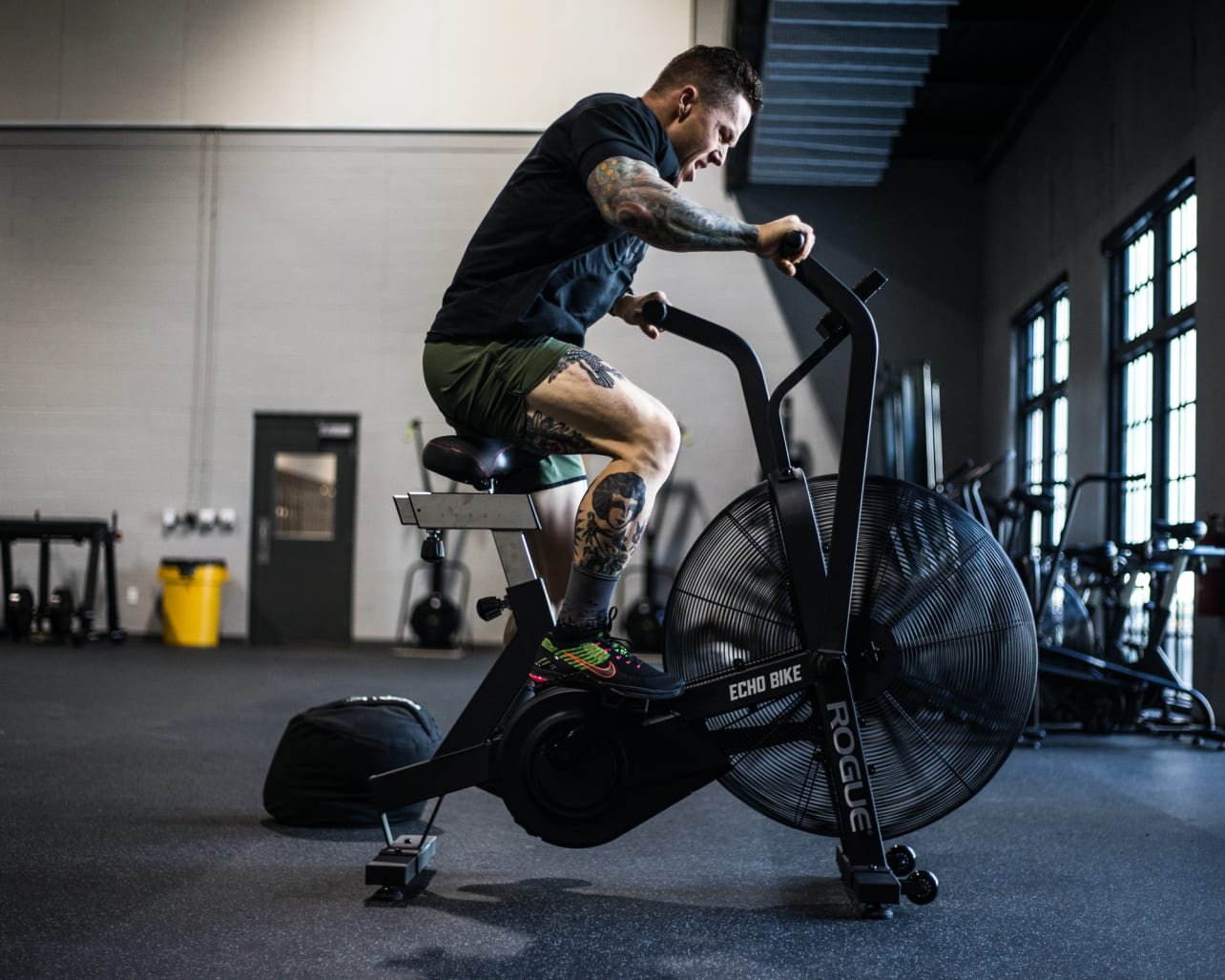 The Rogue Echo Bike is a high‑performance air resistance exercise bike designed for intense cardio workouts, interval training, and full‑body conditioning. Ideal for cross‑training, home gyms, and commercial fitness spaces, the Echo Bike uses a heavy‑duty fan wheel to generate smooth, progressive resistance — the harder you pedal, the more resistance you create.