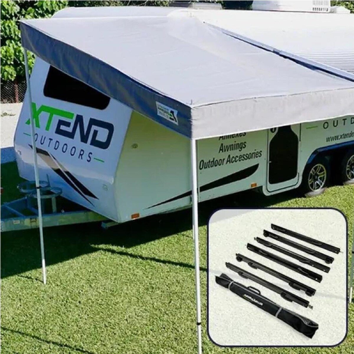 - Reversible so it can be set up on either the front or rear of the awning
